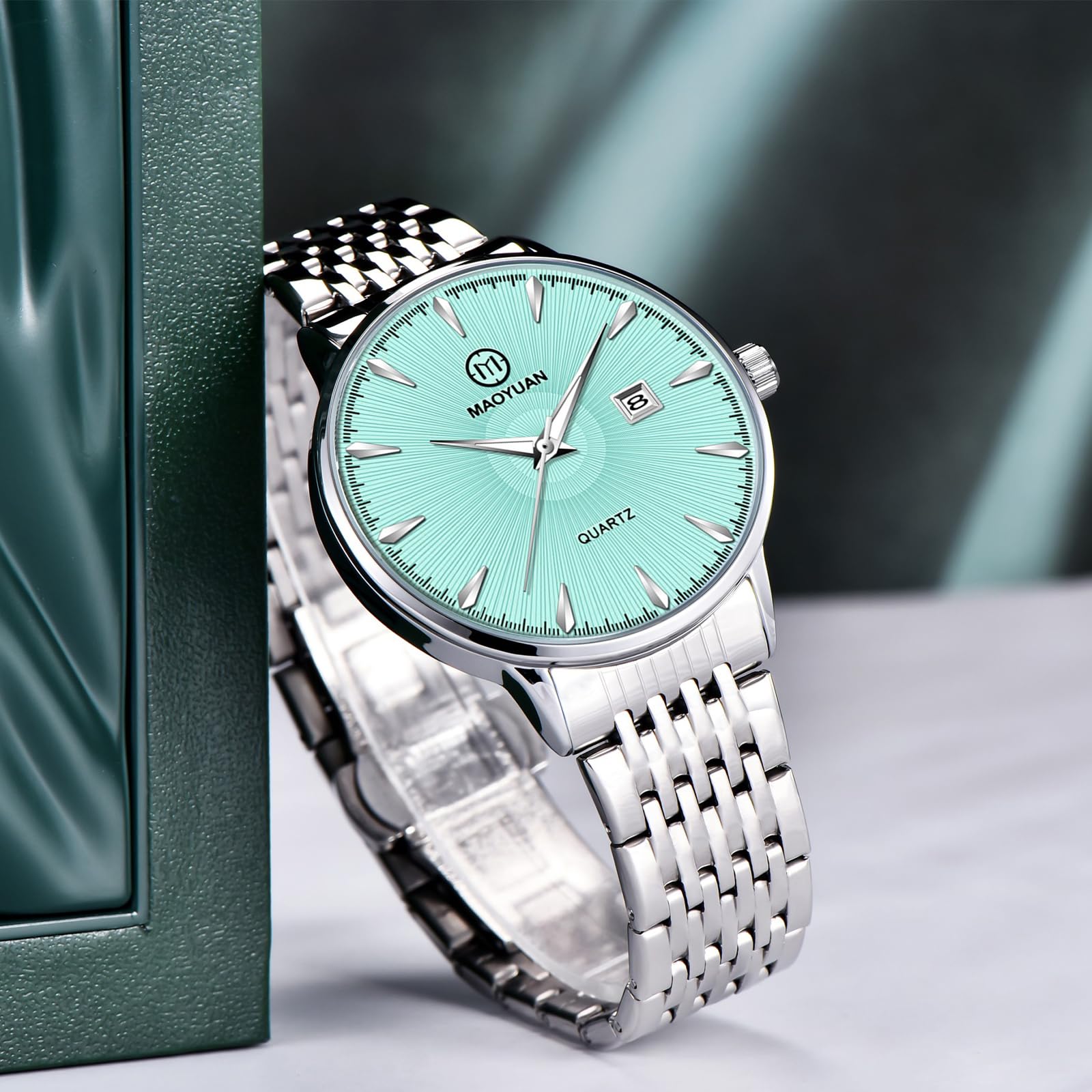 - Men's Watch: Featuring a simple design with a classic 40mm round dial that is easy to read and includes a date display at 3 o'clock, this watch combines modern simplicity with timeless elegance and is perfect for any outfit or occasion.