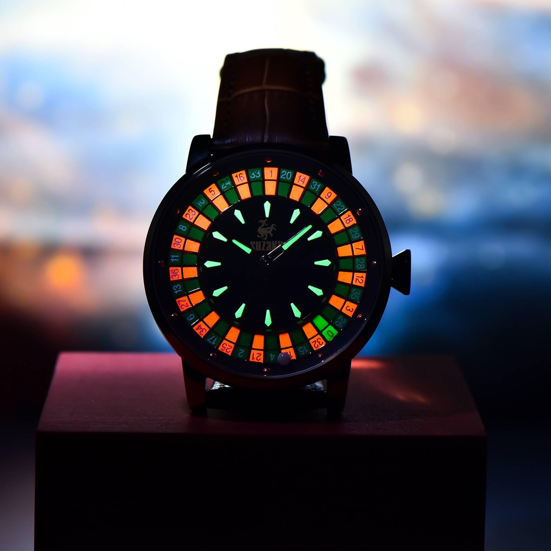 SUZAKU Men's Automatic Watch 46mm Roulette Mechanical Watch Men's Watch Automatic Movement NH35A Waterproof Luminous Leather Luxury Men's Automatic Rotating Roulette Watch